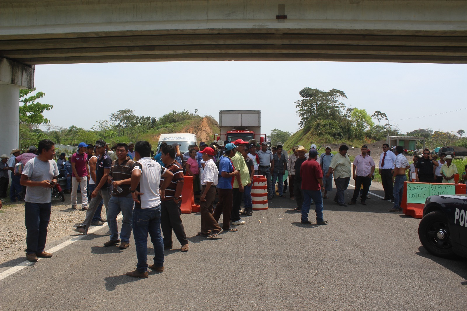 Esta mañana se registró un bloqueo en la carretera federal Raudales debido a manifestantes que exigían la aparición con vida de 4 campesinos que al parecer fueron ‘levantados’.