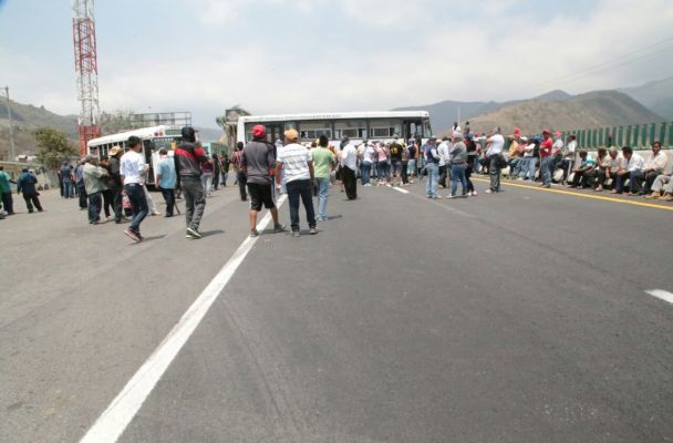 En el lugar se mantienen atentos los elementos de la Policía Federal, los pobladores atravesaron cuatro camiones de pasajeros, dos de la línea Chyc, un AU y un de Metropilitanos.
