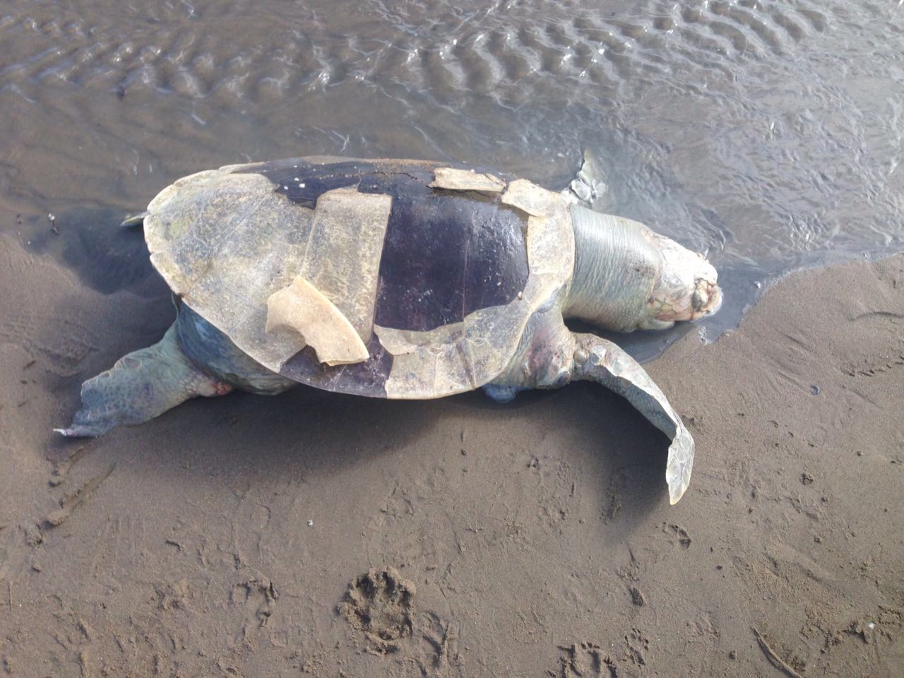 Lo que preocupa es que cerca del cuerpo de este animal fueron hallados sedimentos de lo que podría ser hidrocarburo debido al olor característico La tortuga recaló este miércoles, puesto que no se tenía reporte de esa zona de un animal sin vida, informó un corredor que hace ejercicio todos los días.