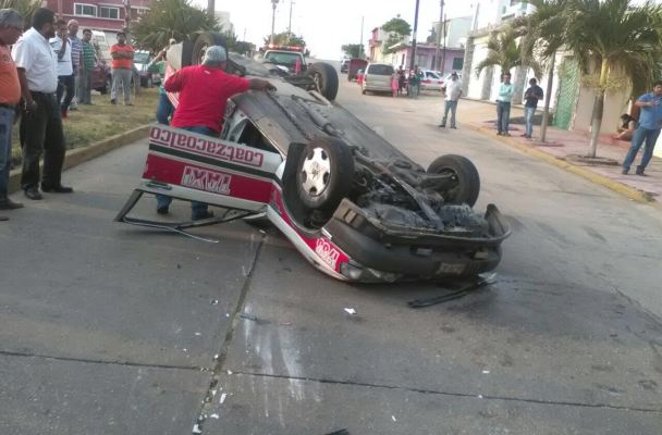 Volcadura de taxi en Coatzacoalcos; hay lesionados.