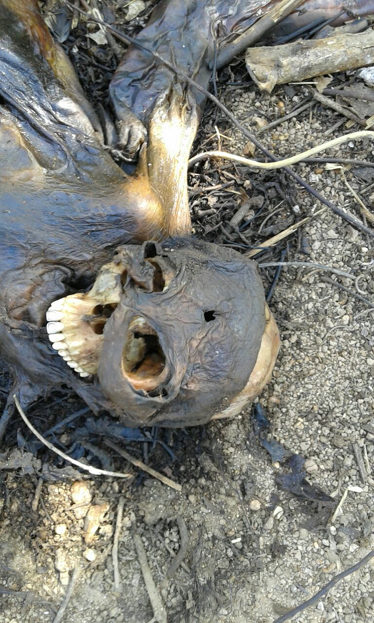 Los primeros en llegar al lugar fueron elementos de Seguridad Pública Municipal, los oficiales descendieron hasta el punto, y a un costado de un pequeño árbol yacía el cadáver, la piel de la víctima se pegó a los huesos por la deshidratación en el proceso de descomposición.