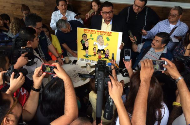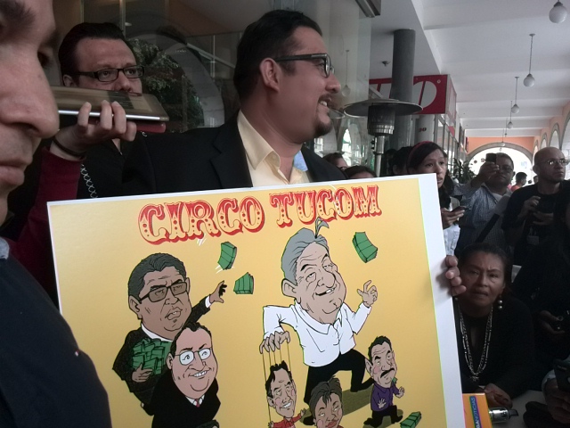 Mostró una caricatura donde señala gráficamente sus declaraciones, reiterando que los líderes de Morena están en supuesto contubernio con el Gobierno, para favorecer al PRI, “le van a meter dinero a Morena para tratar de desinflar la Alianza, tenemos información que se han reunido la cuñada de López Obrador, con el jefe de la Delegación Cuauhtémoc, Ricardo Monreal”.