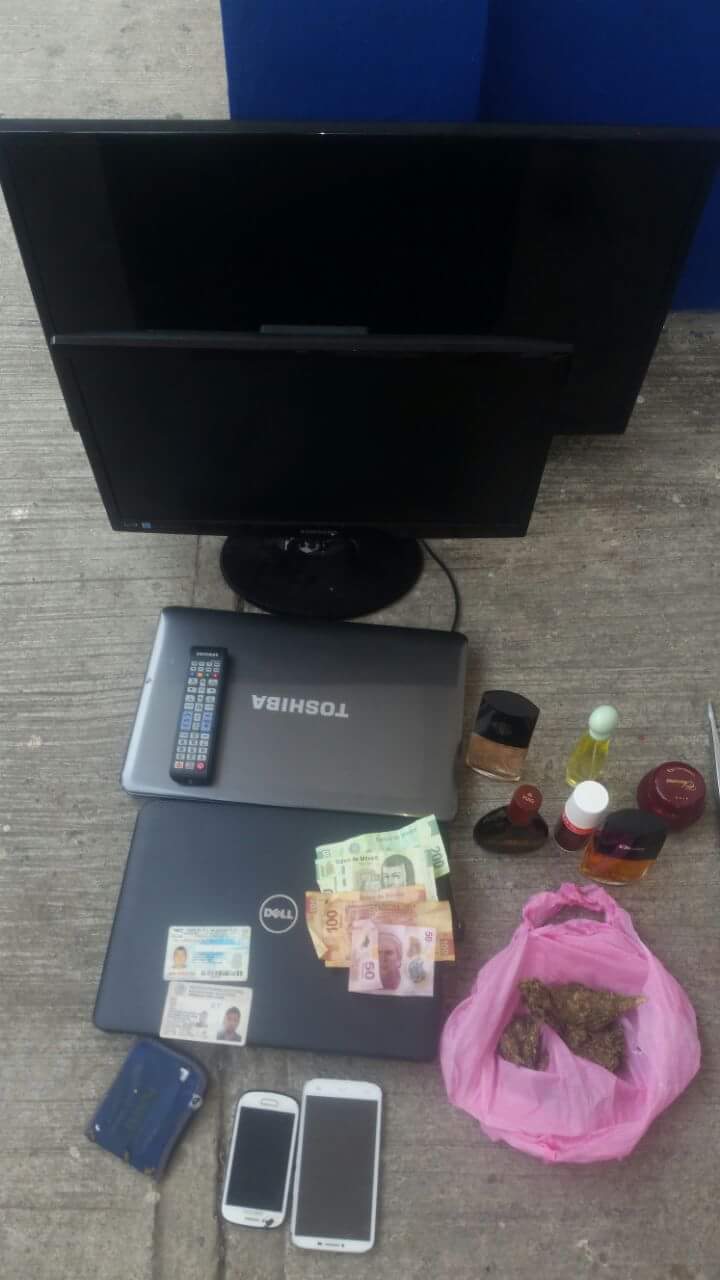Asimismo, a los detenidos que fueron puestos a disposición del Ministerio Público Federal, se les aseguró dos computadoras portátiles, dos pantallas de televisión, cuatro perfumes para dama y un desarmador.