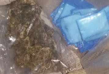 Por dicha acción, los oficiales le indicaron el alto total y bajo el respeto a sus derechos como ciudadano, se le realizó una revisión precautoria, encontrando entre su ropa, dos envoltorios de plástico transparente, conteniendo uno de ellos diferentes dosis (grapas) de un polvo blanco con características de un alcaloide y en el otro, hierba seca, al parecer cannabis.