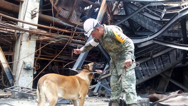 La empresa Petróleos Mexicanos inició la búsqueda de restos humanos mediante un equipo táctico con perros rastreadores. Se tratan de binomios agentes-caninos.