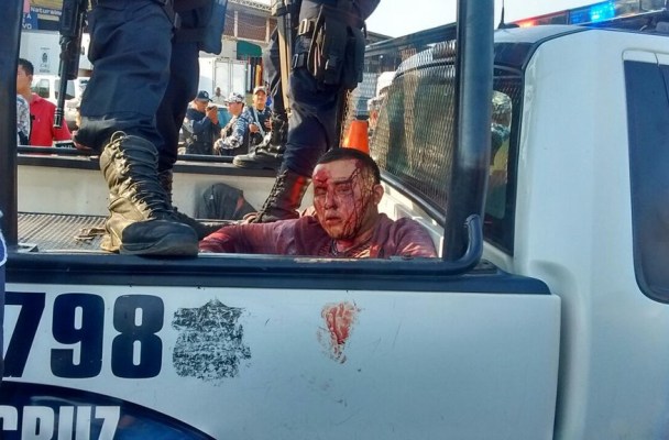 Uno de los secuestradores que recibió una golpiza por los mismos comerciantes de la central de abasto.