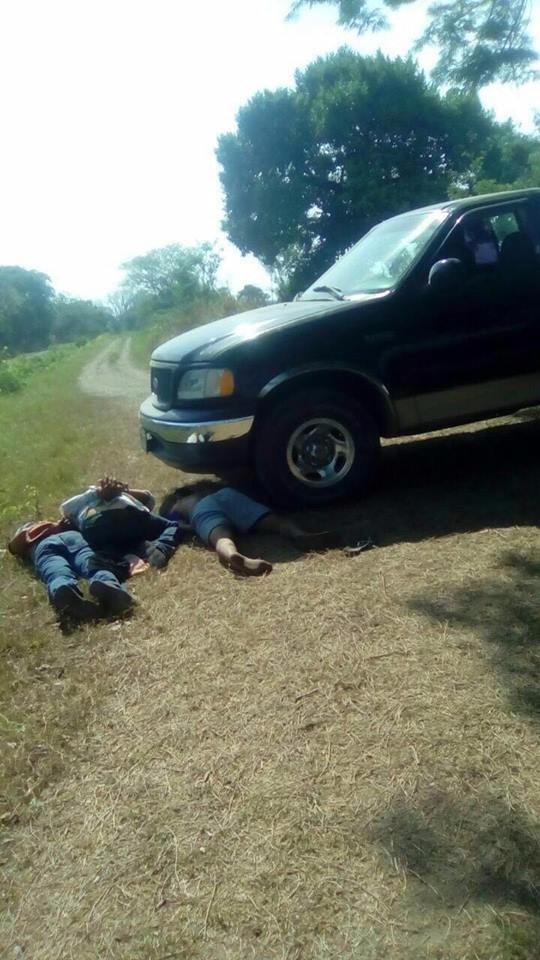 Tlalixcoyan, Ver.- Manitados, tirados en el suelo y frente a una camioneta, fueron encontrados tres cuerpos del sexo masculino sin vida.