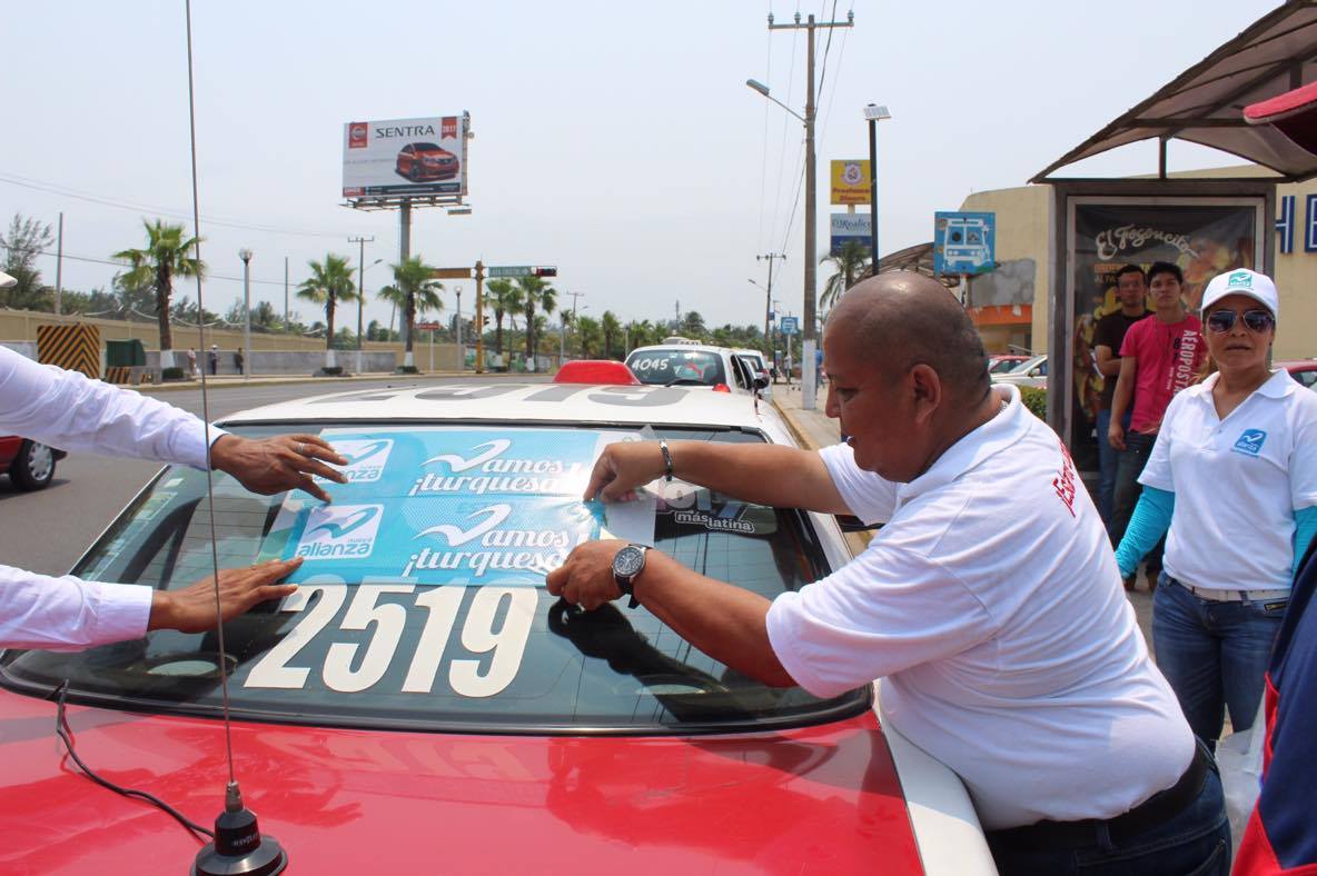 Coatzacoalcos, Ver.- Ayer viernes en el fin de semana y desde tempranas horas, Juan Aldana -candidato de Nueva Alianza a la diputación del distrito 29- estuvo en una conocida parada de taxis y urbanos en la Avenida Universidad saludando a todos los trabajadores del volante.