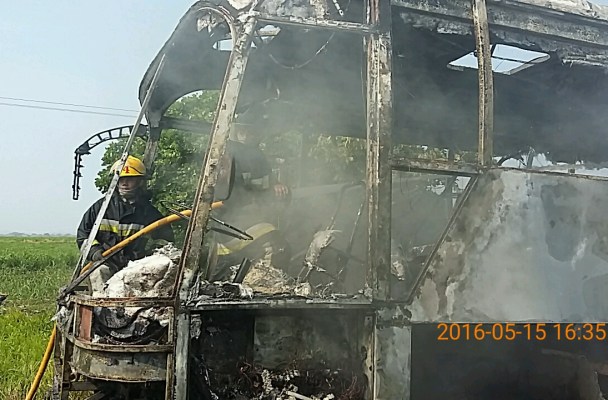 Lerdo de Tejada, Ver.– Un autobús de Transporte Los Tuxtlas terminó consumido por el fuego al incendiarse en el tramo de la carretera federal 180 Matamoros Puerto Juaréz entre Lerdo de Tejada y Ángel R. Cabada.