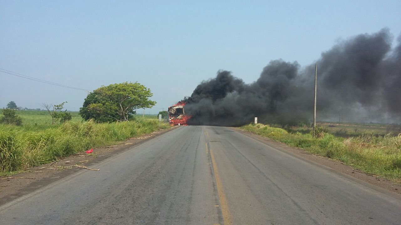 Se incendia autobús de la línea Los Tuxtlas en carretera Lerdo de Tejada