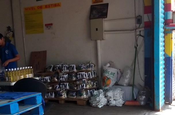 La CTM mandó a comprar miles de despensas a una bodega de abarrotes, donde se empaquetan los productos para llevarlos a las colonias.