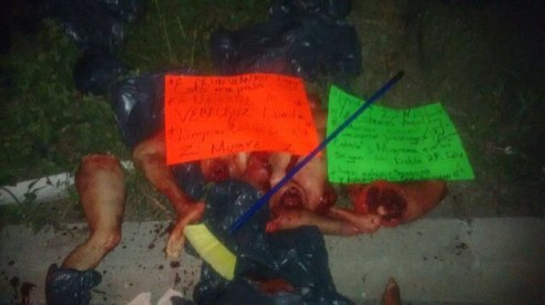 En los cadaveres se encontró un narco mensaje con la siguiente leyenda: «la limpia CJNG ya estamos aquí, Marino, Chuky, Cachorra, Pechugas, Estrella y mugroos que los sigan.