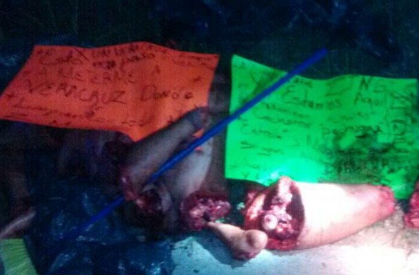 Cerca de las 01:35 minutos se recibió el reporte al 066 que sobre carretera había dos cuerpos tirados, los cuerpos de seguridad arribaron al punto indicado y hallaron cinco cuerpos descuartizados.