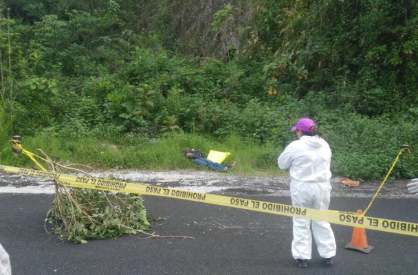 Coscomatepec, Ver.- Ejecutado y con un narco mensaje fue hallado el cuerpo del hijo de un taxista de Coscomatepec a un costado de la carretera federal Fortín-Huatusco a la altura del puente del Rio Jamapa.