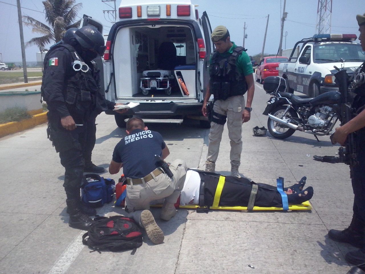 Coatzacoalcos, Ver.- Gracias a los reportes ciudadanos al número de emergencias 066, los servicios médicos de la Secretaría de Seguridad Pública (SSP), destacamentados en la Base de Operaciones de Fuerza Civil en esta ciudad, brindaron en diferentes siniestros terrestres, atención prehospitalaria a dos personas del sexo masculino, uno de ellos requirió traslado a un hospital.