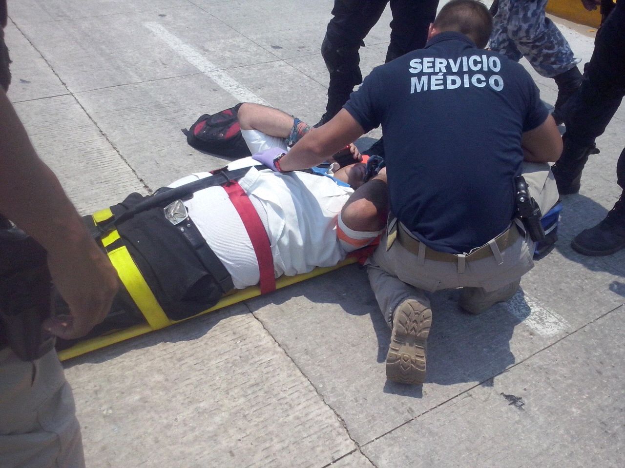 El agraviado presentó pérdida de conocimiento por unos minutos y paramédicos atendieron heridas lacerantes en tobillo izquierdo y codo derecho, un hematoma en región parietal izquierda de cráneo, siendo trasladado al HGZ 36 del Seguro Social para su valoración y atención correspondiente.