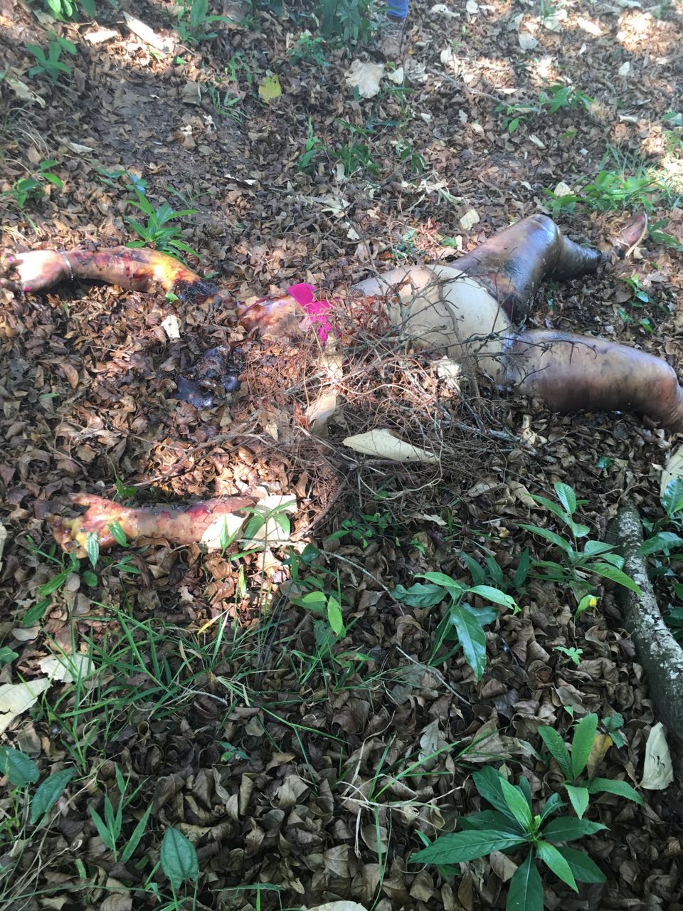 El o los agresores intentaron sepultarla, pero al parecer fallaron en el intento, y sólo la cubrieron con hojas secas.