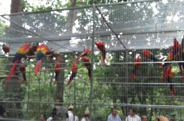 Las guacamayas recibieron adiestramiento para su adaptación a la vida silvestre ya que nacieron en cautiverio en el parque Xcaret de Quintana Roo desde donde fueron traídas para que repoblaran Los Tuxtlas.