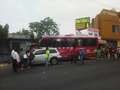 Se trata de un camión color lila número 01 sin placas que cubría la ruta Juan Escutia Olmeca de oriente a poniente.