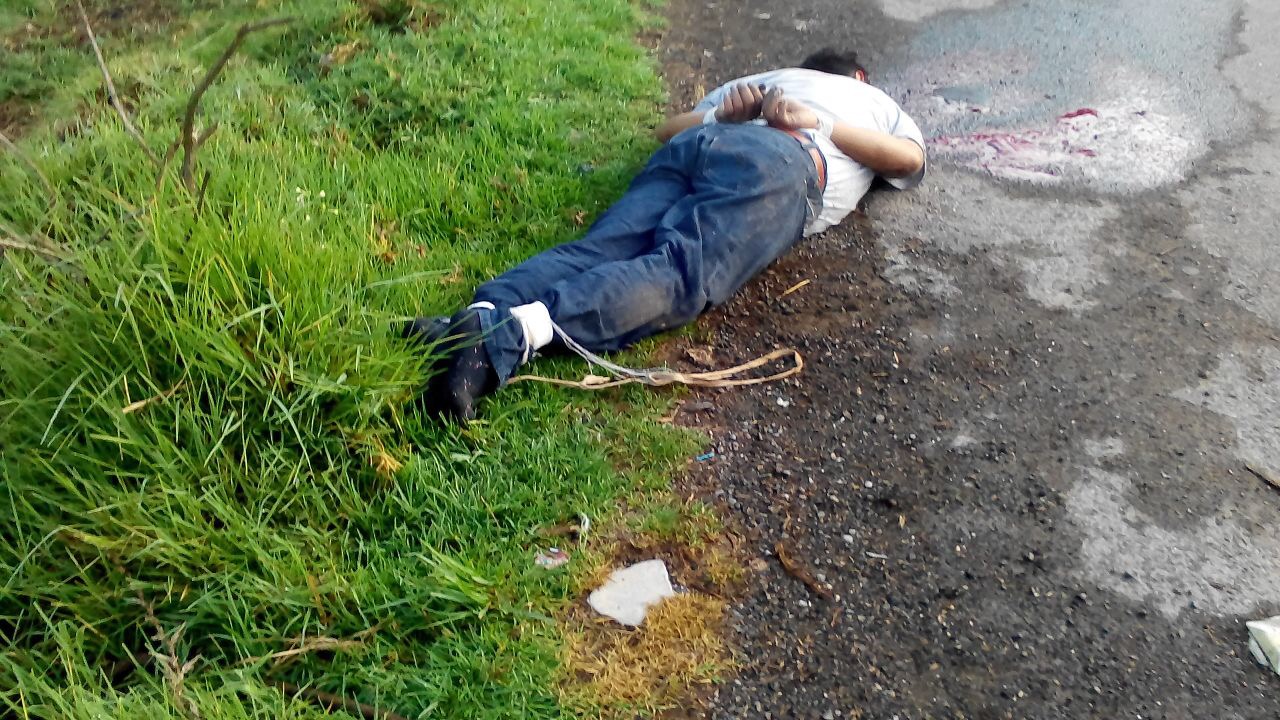 El cuerpo fue encontrado en el kilómetro 236 de la autopista México 150-D tramo de terraceria que conduce a las comunidades de Magueyes y Nuevo Magueyes, la persona estaba boca abajo, vestía playera gris, pantalón azul de mezclilla, estaba amarrado de pies y de manos hacia atrás.