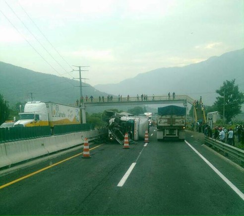 Debido a que la unidad quedó atravezada sobre la cinta asfáltica, el tráfico se cerró en ambos carriles y se ha solicitado la presencia de grúas para mover el trailer.