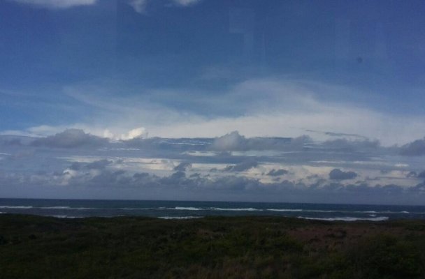 Vista al Este desde Laguna Verde Veracruz. A la distancia, convección de la Depresión Tropical «Cuatro» acercándose