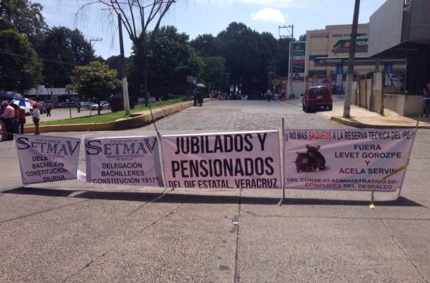 Los pensionados y Jubilados bloquearon desde las seis de la mañana la avenida Ruíz Cortínez, frente de la Secretaría de Finanzas debido a que el gobierno de Veracruz no les deposita su pensión de manera puntual.