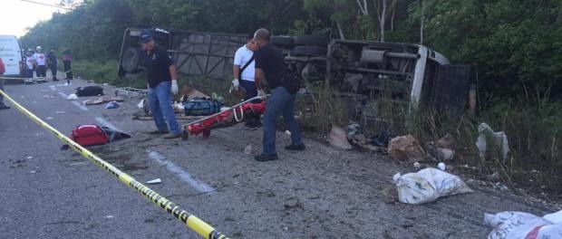 De acuerdo con un reporte preliminar de Forum Quintana Roo, el autobús de la línea Tour Acosta se salió de la carretera y terminó volcado sobre uno de sus costados alrededor de la cinco de la mañana en el kilómetro 158 + 700 del tramo de la carretera federal Tulum-Felipe Carrillo Puerto.