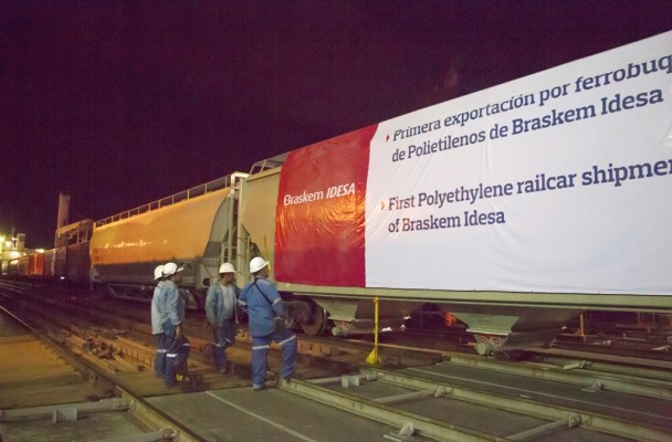 Coatzacoalcos, Ver.- Braskem-Idesa, consorcio dedicado a la producción de petroquímicos y que recientemente inaugurara el complejo más importante de América Latina, inició la exportación de polietileno en carro tolvas por el ferrobuque, único en el Sistema Portuario Nacional.