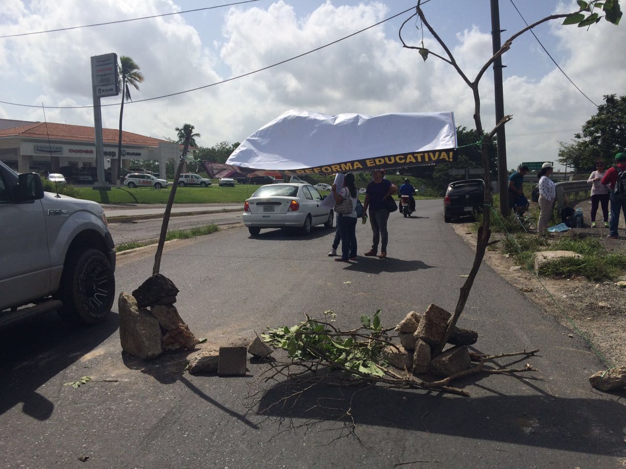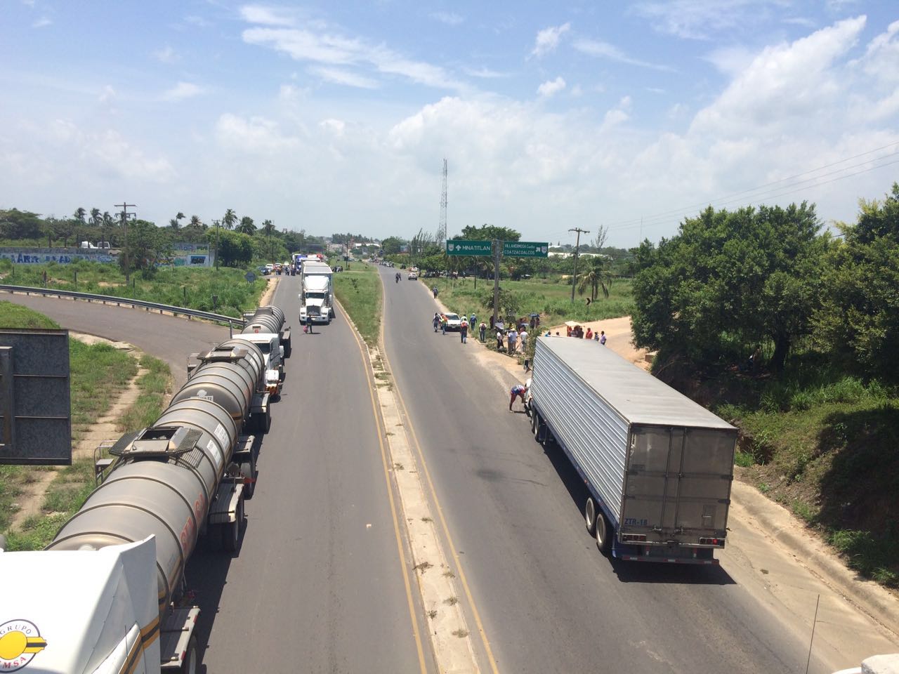 El sector magisterial bloqueó la carretera del sureste mexicano por el entronque de Cosoleacaque Minatitlán en apoyo a los docentes en Oaxaca. Se formó larga hilera de vehículos que no podían transitar, un verdadero caos vial.