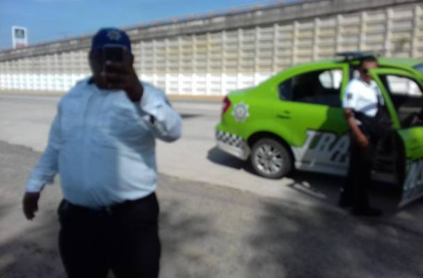Al peatón le llamó la atención este hecho porque la patrulla de Tránsito Estatal estaba estacionada en plena calle, obstruyendo el tráfico y generando peligro hacia los automovilistas que transitan por ahí debido a que es vía rápida.