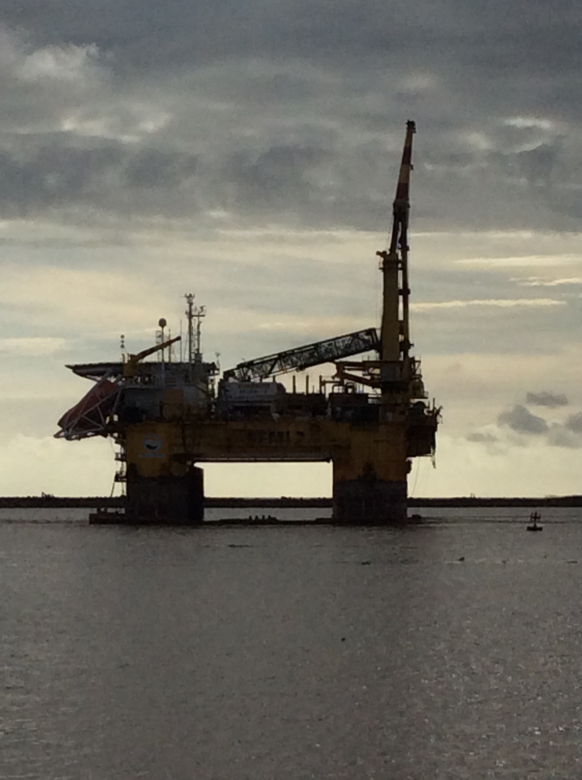 Plataforma petrolera ingresa por la bocana, en el canal de navegación.