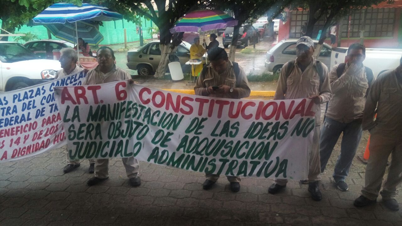 Coatzacoalcos, Ver.- Esta mañana, con todo y lluvia debido al paso de la depresión tropical Earl, trabajadores transitorios de PEMEX reclamaron la falta de empleo e inversión en los complejos petroquímicos de Coatzacoalcos.