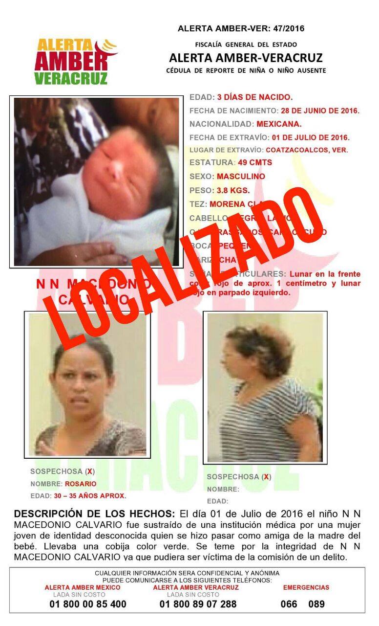 Anoche, con la detención de una persona del sexo femenino, la policía ministerial recuperó sano y salvo al bebé que fue robado hace unos días a las afueras del hospital regional de coatzacoalcos.