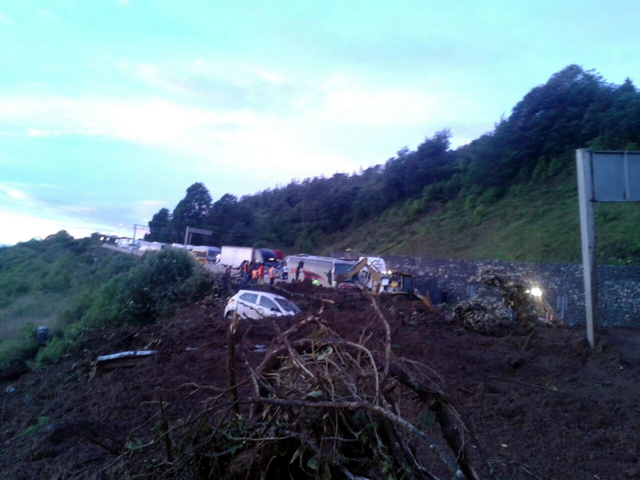 El retiro de las grandes cantidades de tierra tardó varias horas, por lo que que el tráfico y la hilera de autos y camiones es larga.
