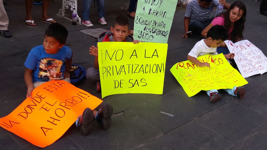 Desde temprana hora los empleados del SAS se plantaron en el Zócalo de Veracruz, llegaron al izado de Bandera para manifestarse en protesta por la entrada del Grupo MAS y la expulsión del SAS, con ello el despido de los más del 1200 trabajadores.