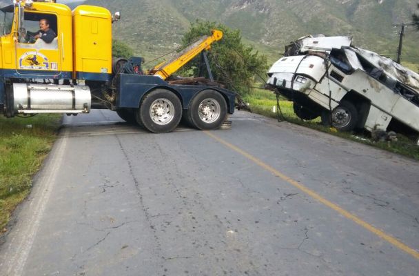 Volcadura de autobús con pasajeros