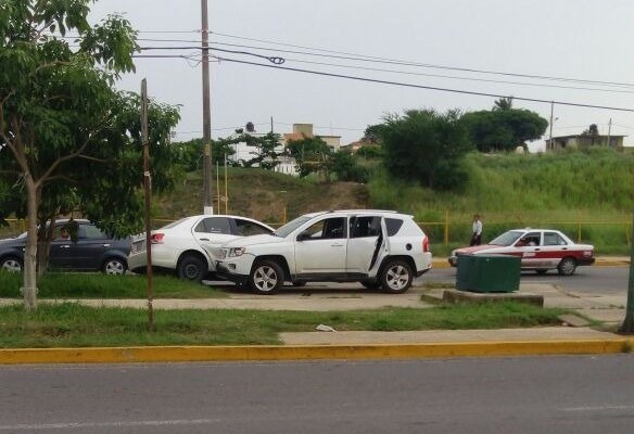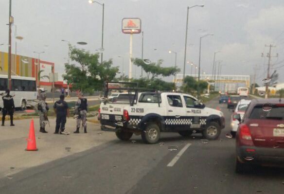De acuerdo con los primeros informes a dos unidades se les observó venir desde la colonia Puerto Esmeralda y pasando la plaza comercial Sendero intercambiaron disparos.