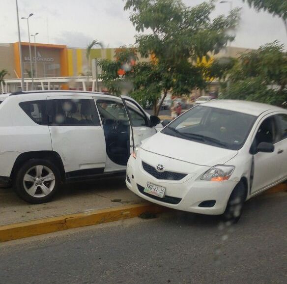 Luego de balacera, unidades que participaron en la refriega chocan frente a Plaza Comercial.