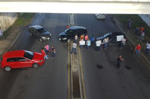 Alrededor de 50 maestros bloquean la carretera Minatitlán-Cosoleaque por el Puente de la Diez)
