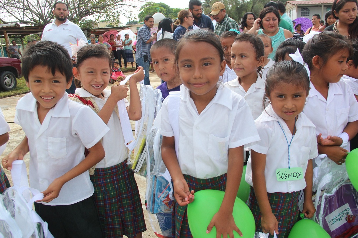Durante su visita a las escuelas de los seis ejidos, las autoridades Municipales entregaron a los alumnos paquetes de útiles escolares, los cuales incluyen una mochila, libretas, lapicera, colores y juego de geometría.