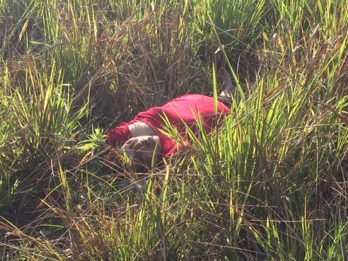 La identidad de la occisa, no fue confirmada ya que no presentaba algún documento para reconocerle, el cuerpo fue encontrado en el rancho propiedad de Jorge Morales Silva, autoridades realizaron las diligencias correspondientes para el levantamiento del cuerpo y enviarlo al Servicio Medico Forense de Acayucan.