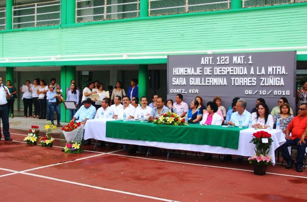 Posteriormente, Caballero Rosiñol participó en el homenaje de despedida que se le realizó a la maestra Sara Guillermina Torres Zúñiga, directora de la escuela primaria Artículo 123 “Tomasa Valdés viuda de Alemán” vespertina uno, tras cumplir satisfactoriamente 51 años como docente y por su jubilación.