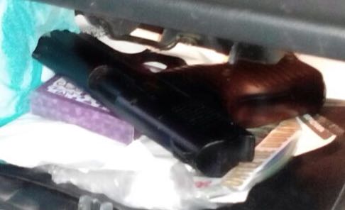 Durante la inspección ocular al interior del vehículo, en el compartimento conocido como “guantera”, elementos policiales encontraron un arma de fuego, tipo escuadra, marca Lorcing, automática, con cinco cartuchos útiles calibre .380 milímetros. Derivado de lo anterior, los dos sujetos, el arma y la camioneta, fueron puestos a disposición de la autoridad ministerial correspondiente.