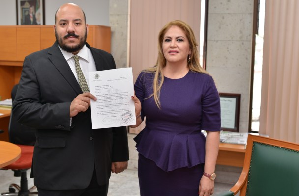 La legisladora recibió en la oficina de la Presidencia del Congreso del Estado al secretario particular del Ejecutivo estatal, José Ramón Cárdeno Shaadi, quien entregó dicha solicitud, misma que será analizada por las diputadas y diputados que conforman la actual Legislatura.