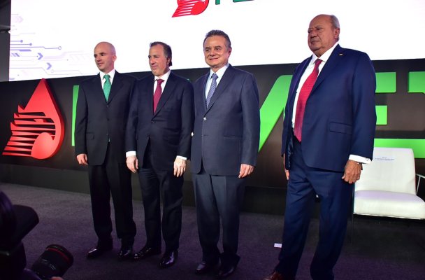 Director de PEMEX, José Antonio González Anaya; y el Secretario de Energía así como el Secretario de Hacienda, en la presentación del Plan de Negocios.
