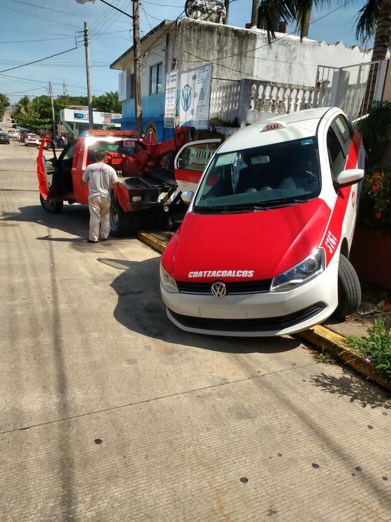 Coatzacoalcos, Ver. Tras registrarse un accidente durante el mediodía en la avenida Pino Suárez esquina con avenida Uno de la colonia Benito Juárez, en donde un taxi quedó sobre la jardinera de una vivienda, es que trascendió que el conductor presuntamente iba ser privado de su libertad.