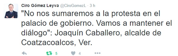 Coatzacoalcos, Ver. Joaquín Caballero, presidente municipal de Coatzacoalcos, Veracruz, aseguró que «no nos sumaremos a la protesta en el Palacio de Gobierno, vamos a mantener el diálogo, es el camino adecuado para que podamos obtener respuesta».