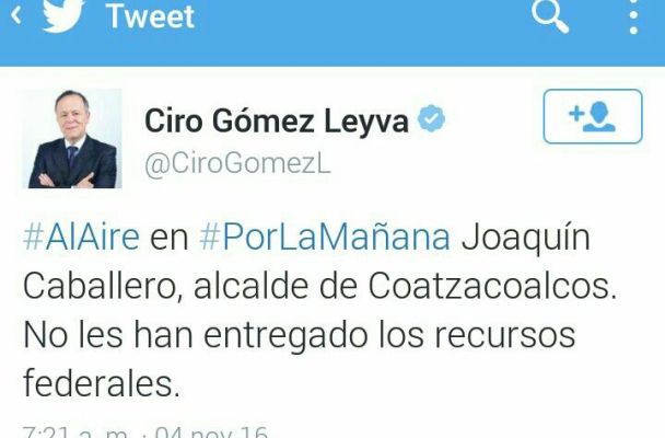 En el noticiero a nivel nacional del periodista Ciro Gómez Leyva, el alcalde de Coatzacoalcos -Joaquín Caballero-recordó que el Gobernador Flavino Ríos no depositó las partidas presupuestales que adeuda al municipio.