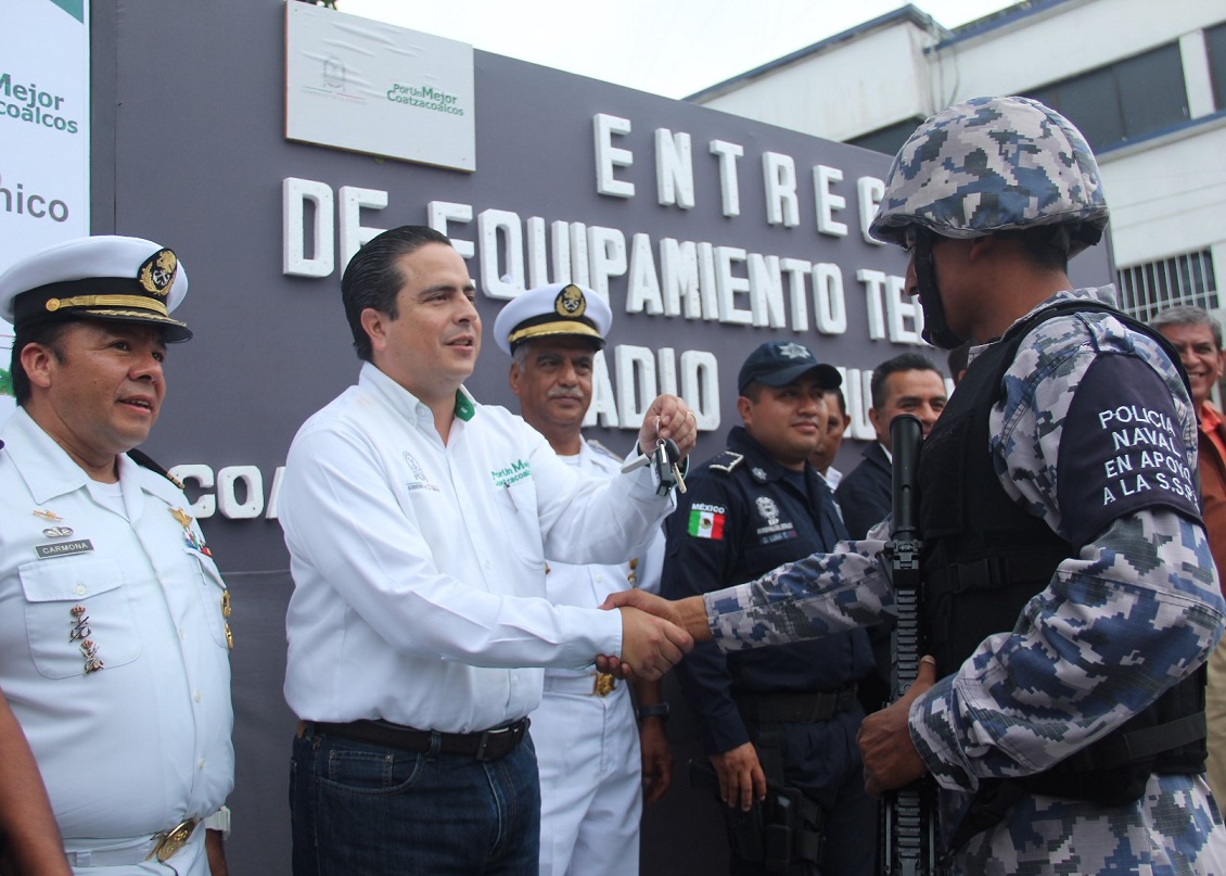 El director administrativo logístico de la Policía Naval, Capitán de Fragata, Marco Juárez Carmona, en representación del comandante Miguel Ángel de la Rosa Vera, destacó el esfuerzo del Ayuntamiento de Coatzacoalcos para brindar las herramientas que se requieren para optimizar el servicio de seguridad en la ciudad.